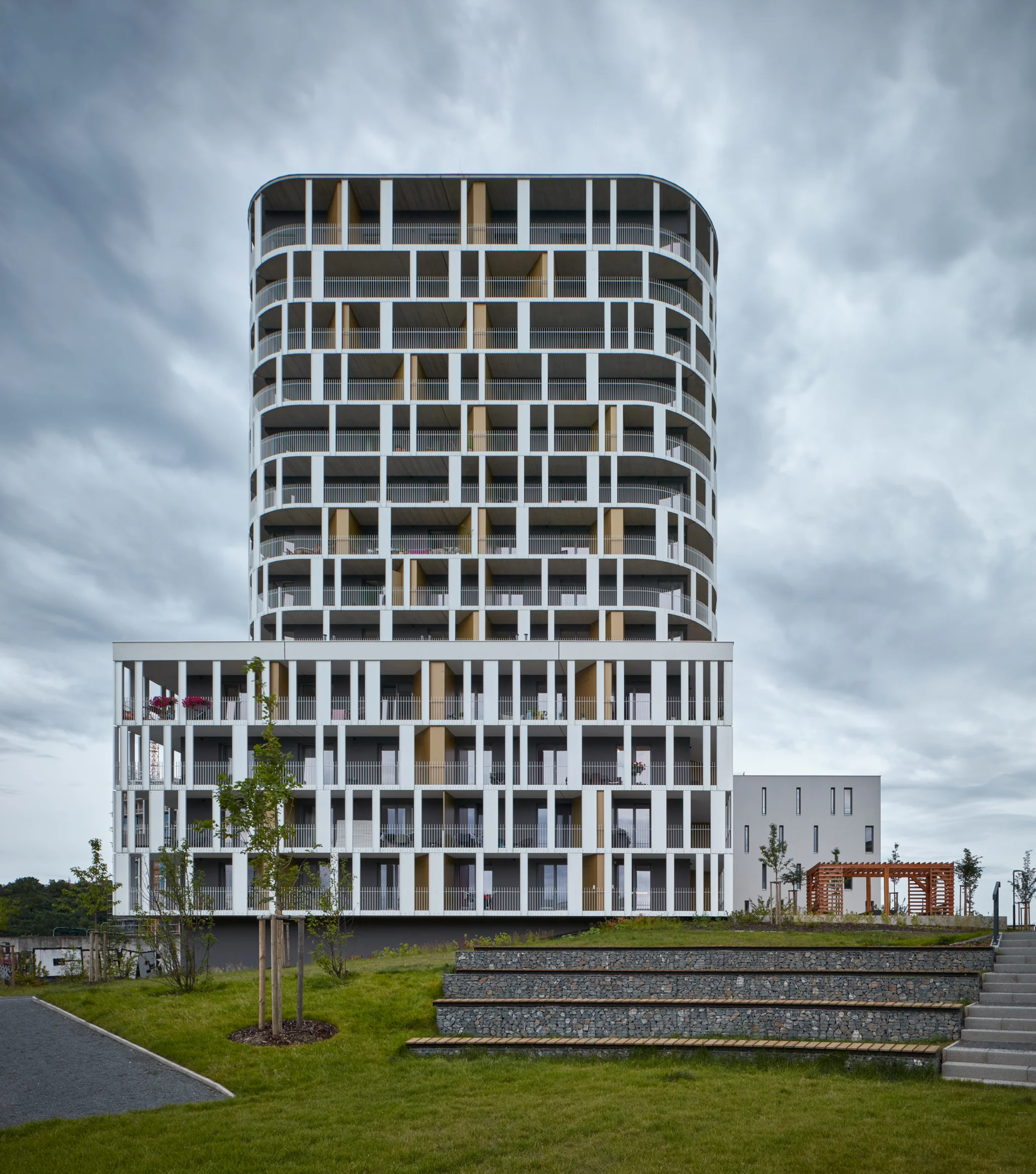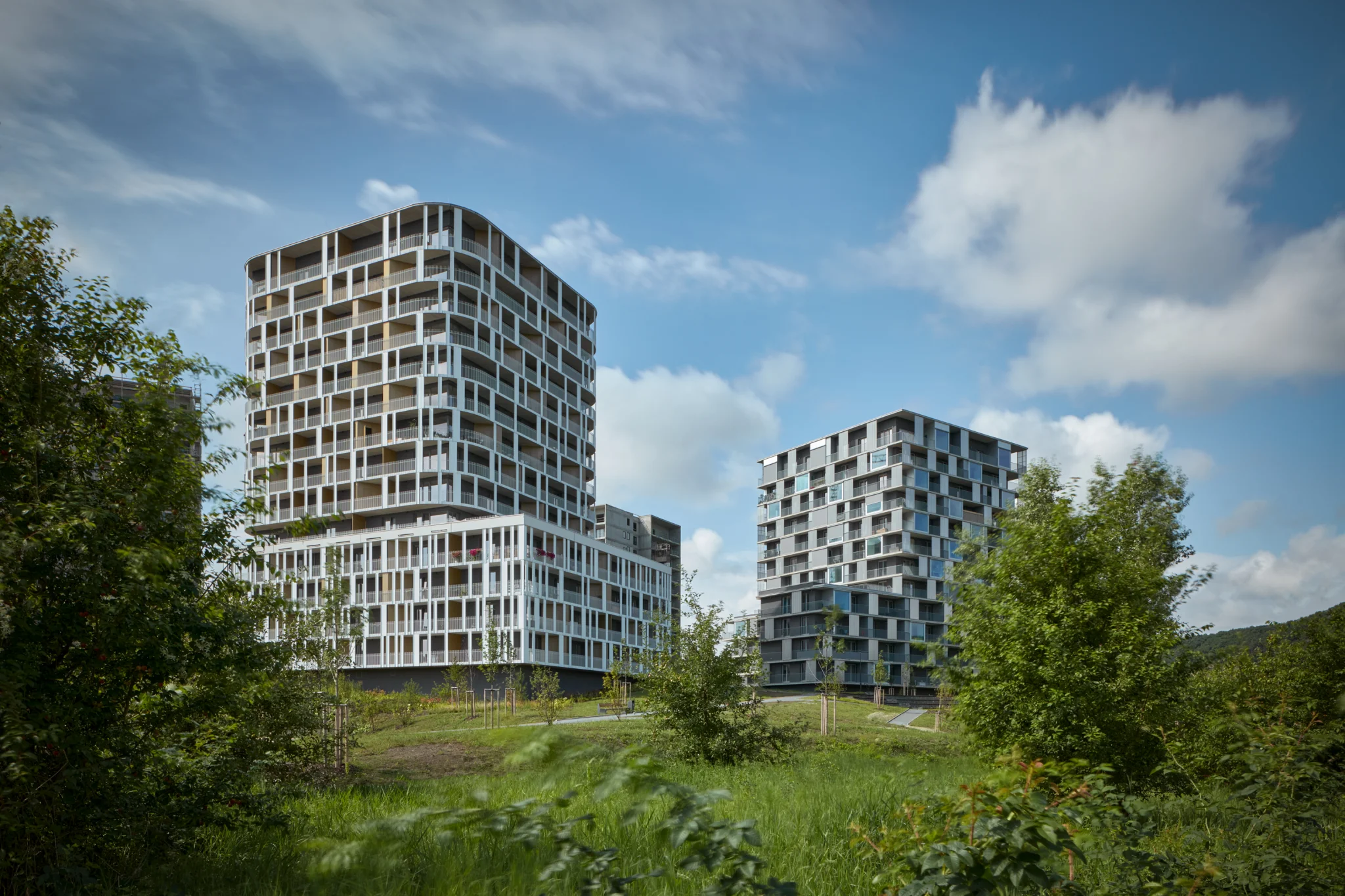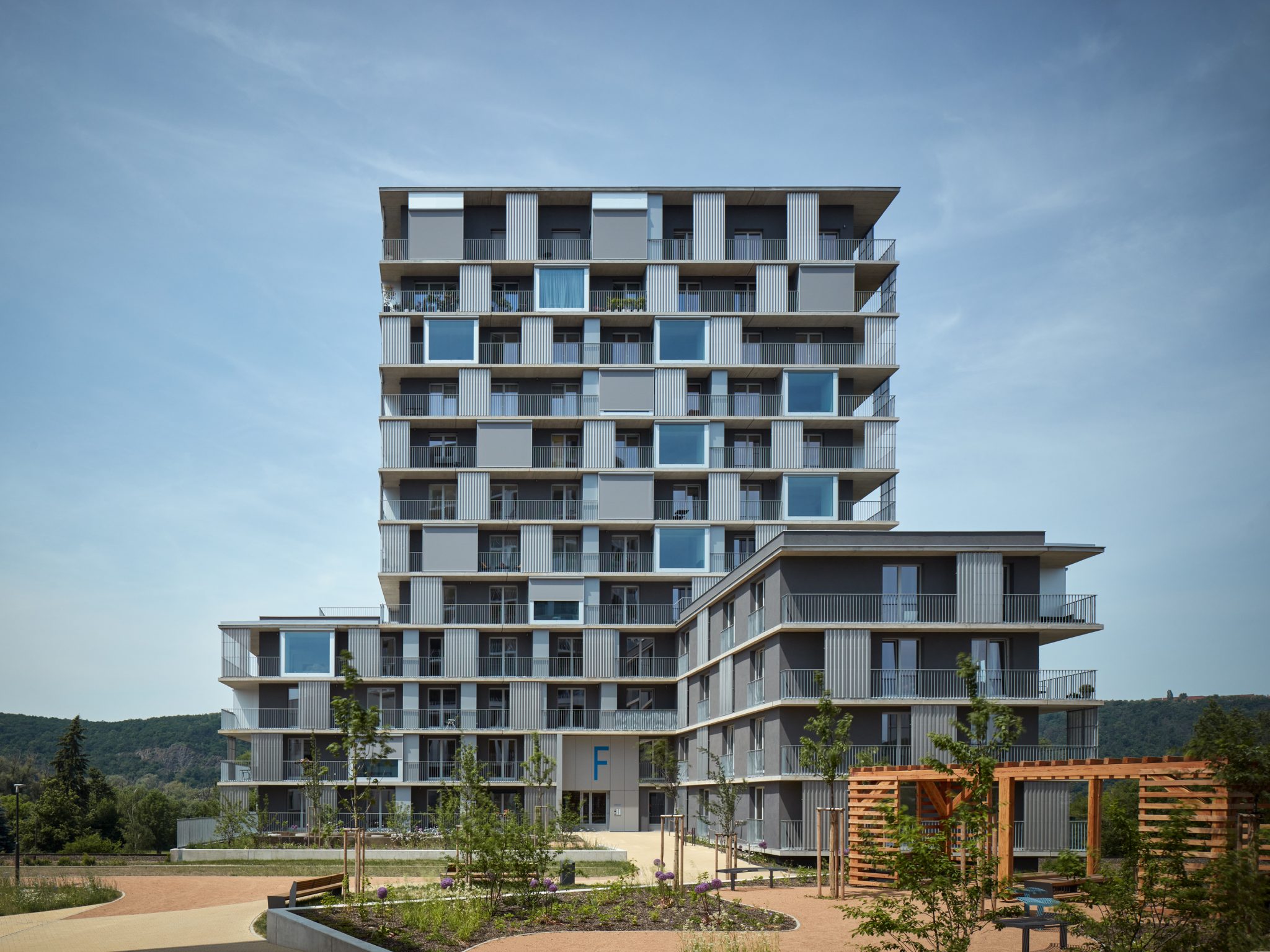 Zahálka is a modern complex of seven apartment buildings, which is being built in several stages in Prague 4 in the vicinity of the Vltava River and the Hodkovičky golf course. It stands out not only for its height, but also for its architectural concept and emphasis on ecology. The entire complex is designed exclusively with underground parking to preserve all the surface for greenery. Dozens of trees, gardens and meadows interspersed with paths will complement the revitalised Zátišský Brook.